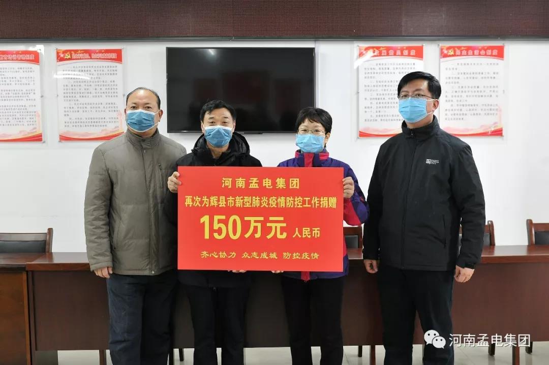 1月29日,集團黨委主動向輝縣市慈善協(xié)會捐款500萬元,2月1日再次捐款150萬元,助力全市抗擊新型肺炎,堅決打贏疫情防控阻擊戰(zhàn)。