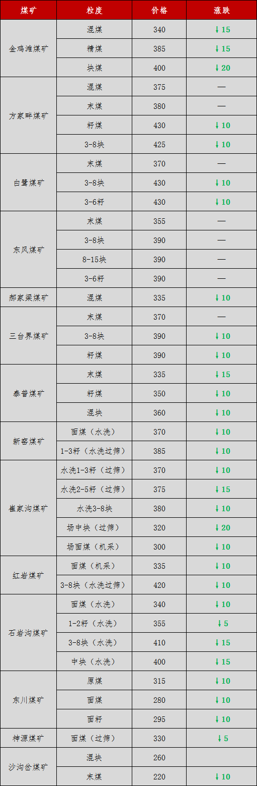 除此之外,崔星太也曾公開表示:我們既反對低價傾銷,也反對借需求增加哄抬物價,甚至形成市場壟斷,這兩種極端我們都要反對。我們要理性的看待市場的發(fā)展,維持市場的平穩(wěn)健康發(fā)展。煤炭價格跌入谷底,將現(xiàn)全行業(yè)虧損 在全國各地水泥價格出現(xiàn)下調(diào)的同時,煤炭行業(yè)的發(fā)展更讓人大跌眼鏡。據(jù)水泥人網(wǎng)了解,煤炭價格也跌至谷底。作為國內(nèi)煤市風(fēng)向標,此前,CCI5500現(xiàn)貨指數(shù)最新價格為486元/噸,為最近四年首次跌破綠色區(qū)間(500元至570元)。目前CCI5500現(xiàn)貨指數(shù)暫停發(fā)布,但從實際交易來看,目前煤炭現(xiàn)貨價格已經(jīng)跌破470元/噸臨界點,步入紅色區(qū)間。