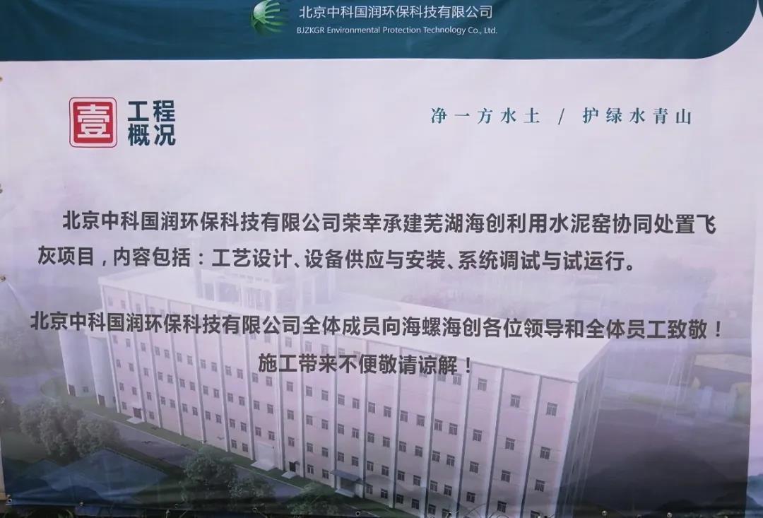 2020年5月20日,北京中科國(guó)潤(rùn)環(huán)保科技有限公司承建的蕪湖海創(chuàng)利用水泥窯協(xié)同處置飛灰項(xiàng)目安裝工程正式開工。
