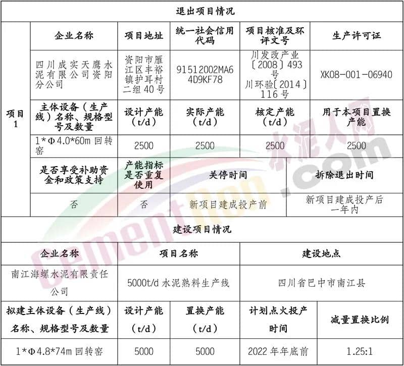 南江海螺水泥有限責(zé)任公司擬建5000td水泥熟料二期項(xiàng)目產(chǎn)能置換方案