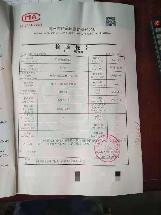 去年被媒體曝光的問題水泥 山東省棗莊市鵬源建材有限公司生產(chǎn)的“海固中聯(lián)牌”水泥 。