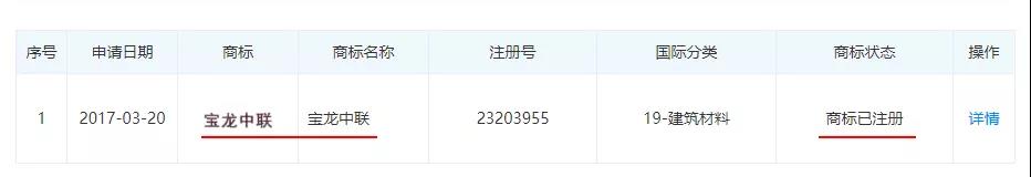 據(jù)查詢,“寶龍中聯(lián)”商標(biāo)持有企業(yè)為安徽省蕭縣寶龍水泥制造有限公司寶龍粉磨分公司。 其“寶龍中聯(lián)”品牌于2017年3月20日申請注冊,目前商標(biāo)狀態(tài)為已注冊。