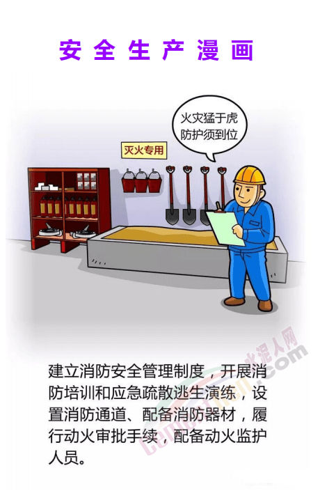 據(jù)水泥人網(wǎng)了解,前不久,因大氣和水污染防治工作排名靠后,新鄉(xiāng)市大氣攻堅(jiān)辦通知下屬水泥建材、物流運(yùn)輸及施工工地停產(chǎn),停運(yùn),停工,水泥廠減產(chǎn)負(fù)荷30%,恢復(fù)時間未定。河南某水泥企業(yè)負(fù)責(zé)人對水泥人網(wǎng)表示:“環(huán)保加嚴(yán)了,安全生產(chǎn)大檢查也來了!”水泥企業(yè)如何做到安全生產(chǎn)?小編用漫畫告訴您: