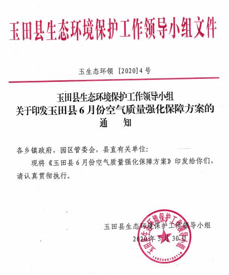 同期,唐山市玉田縣生態(tài)環(huán)境保護工作領(lǐng)導(dǎo)小組了發(fā)布了6月份空氣質(zhì)量強化保障方案。