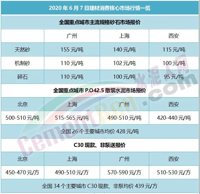 全國(guó)重點(diǎn)城市水泥、砂石、混凝土行情一覽