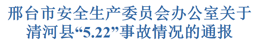 邢臺市安全生產(chǎn)委員會辦公室 于5月23日對該事故進(jìn)行了通報邢臺市安全生產(chǎn)委員會辦公室關(guān)于清河縣“5.22”事故情況的通報提到,清河縣這起較大事故暴露出我市一些地方和單位在堅守安全生產(chǎn)紅線、底線方面存在較大差距。