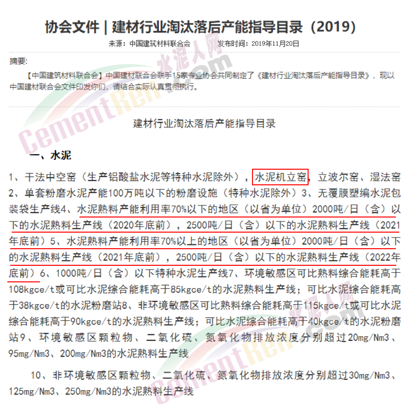 圖:建材聯(lián)合會(huì)《建材行業(yè)淘汰落后產(chǎn)能指導(dǎo)目錄(2019)》截圖