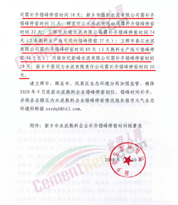并請衛(wèi)輝市、輝縣市、鳳泉區(qū)生態(tài)環(huán)境分局加強監(jiān)管,確保2020年9月底前水泥熟料企業(yè)錯峰停窯到位,錯峰時間補齊。通知原文如下: