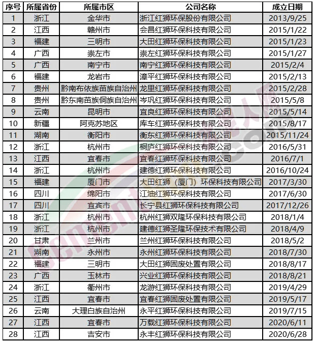 紅獅水泥瘋狂成立了30家環(huán)保公司