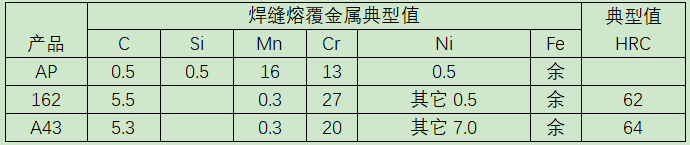 (三) 國內(nèi)某鋼廠在線修復(fù)LM礦渣立磨的過程中,采用明弧自保護(hù)焊絲SK AP-O, SK 162-O,SK A43-O,一周左右連續(xù)作業(yè)的方法在線修復(fù)了磨輥和磨盤襯板以及擋料圈,取得了理想的效果!后來該材料系列又在其它幾個(gè)集團(tuán)公司做了使用,均滿足了客戶要求。焊絲成分參考/