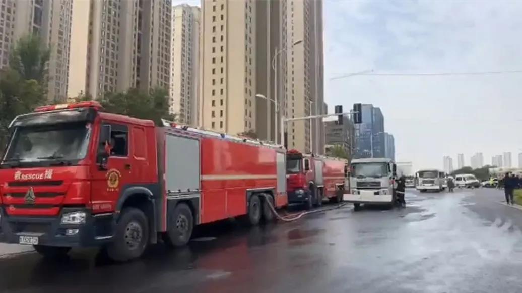 據(jù)了解,經(jīng)過十幾輛消防車的現(xiàn)場(chǎng)撲救,并緊急調(diào)動(dòng)灑水車前來支援,火勢(shì)已經(jīng)被控制。據(jù)目擊者介紹,刺鼻氣味可能是因?yàn)楝F(xiàn)場(chǎng)存放有橡膠制品。