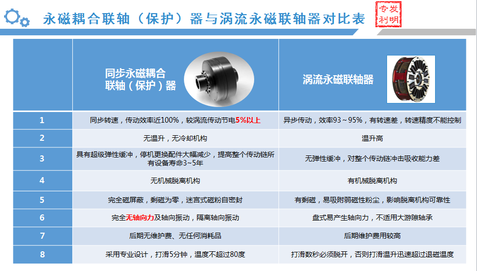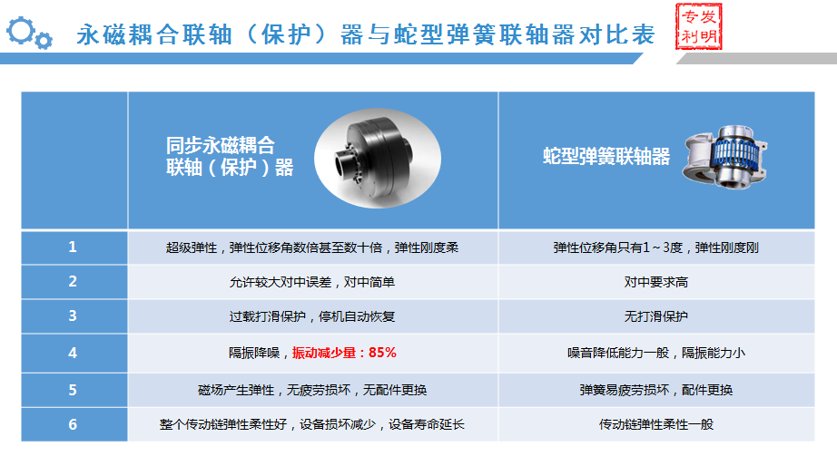 作為國(guó)內(nèi)專業(yè)生產(chǎn)耦合器的企業(yè),江蘇磁谷自主研發(fā)生產(chǎn)的永磁耦合聯(lián)軸(保護(hù))器采用雙永磁筒式結(jié)構(gòu),利用稀土永磁純物理吸力(無(wú)電磁感應(yīng))產(chǎn)生大彈性位移,同步傳遞轉(zhuǎn)矩,廣泛應(yīng)用于水泥、電力、鋼鐵、礦山、煤炭等行業(yè)提升機(jī)、斜拉鏈機(jī)、皮帶機(jī)、斗輪機(jī)、風(fēng)機(jī)、水泵等動(dòng)力系統(tǒng),取代限矩型液偶、蛇形彈簧聯(lián)軸器等沖擊大、振動(dòng)大的剛性聯(lián)軸器及渦流永磁聯(lián)軸器。