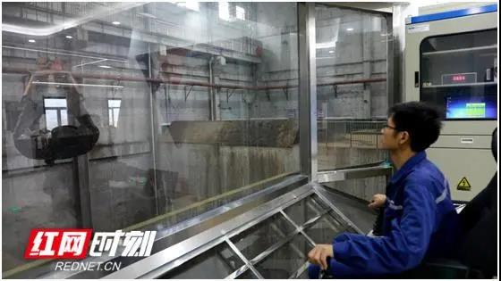 10月26日,在湖南省祁陽縣海創(chuàng)環(huán)??萍加邢薰局锌夭僮髦行模夹g(shù)人員正透過玻璃墻操控大型機(jī)器手處理廢物垃圾。說到垃圾處理廠,很多人的第一印象就是惡臭難聞,而這里卻聞不到一絲異味。