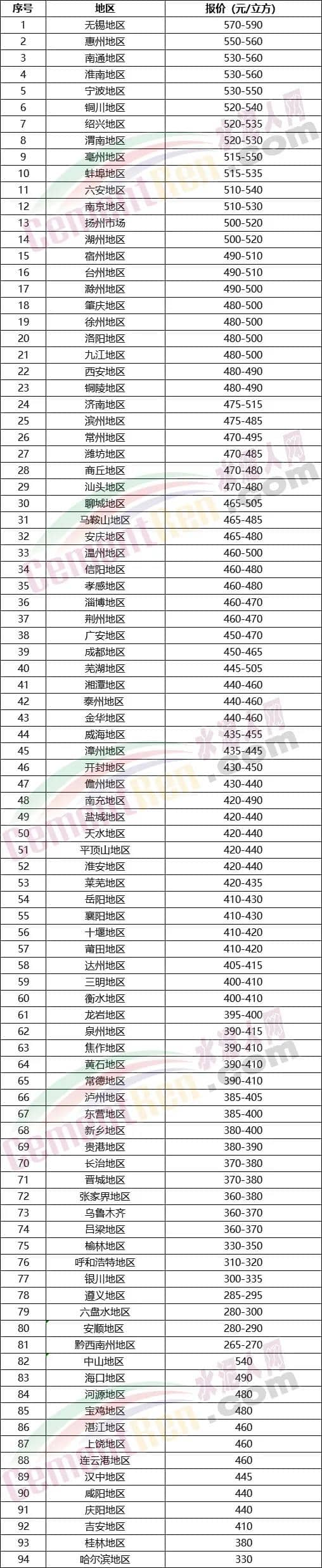 亞泰集團哈爾濱水泥公司通知自今日(11月1日)早8點起水泥執(zhí)行最新價格。其報價單顯示,多個品種標號水泥中不含運費出廠單突破500元/噸,高標號PO52.5散裝水泥報價625元/噸,PO52.5袋裝水泥報價655元/噸。市場主流產(chǎn)品M32.5袋裝水泥報價505元/噸,PO42.5袋裝水泥530元/噸。詳情如下: