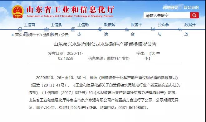 11月2日,山東省工信廳官網連續(xù)發(fā)布四份水泥熟料產能置換公告。涉及魯南中聯(lián)水泥、曲阜中聯(lián)水泥、山東泉興水泥、沂州水泥等四家區(qū)域主導企業(yè)。退出產能合計525萬噸/年,其中退出450萬噸/年產能用于本省新建產能。山東區(qū)域新建產能合計360萬噸/年。置換到廣西區(qū)域產能75萬噸/年。置換比例均為1:1.25。公告詳情如下: