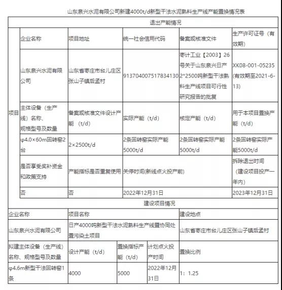 山東泉興水泥新建4000t/d水泥熟料生產線公告