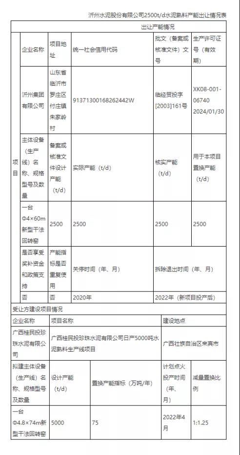 沂州水泥退出75萬噸/年產能公告