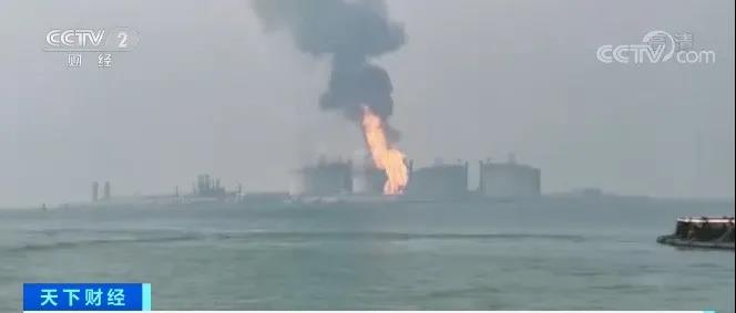多段視頻顯示,當(dāng)時(shí),鐵山港區(qū)LNG液化天然氣接收站碼頭內(nèi),一LNG儲(chǔ)罐頂部躥起火苗,滾滾濃煙里,火勢(shì)十分猛烈。事發(fā)后,多名身著制服,頭戴安全帽的工人快速撤離起火儲(chǔ)罐。
