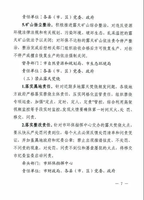 (四)強化曝光,倒追責任。各地要充分發(fā)揮新聞媒體優(yōu)勢,對不落實管控要求的企業(yè)和露天焚燒等問題通過各類媒體公開曝光、系列報道、循環(huán)播報。從11月份開始,凡是市環(huán)保指揮中心交辦的問題,涉及到監(jiān)管責任問題的,務必啟動問責;尤其是露天焚燒問題,每個火點的處理結果必須上報問責文書(加蓋紀委公章)。對于處罰問責不到位、問題性質惡劣、嚴重污染大氣環(huán)境的情形將移交市紀委監(jiān)委啟動問責。