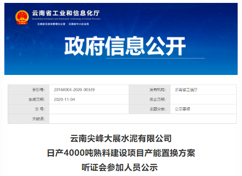 為貫徹落實(shí)《工業(yè)和信息化部辦公廳 國家發(fā)展改革委辦公廳關(guān)于嚴(yán)肅產(chǎn)能置換 嚴(yán)禁水泥平板玻璃行業(yè)新增產(chǎn)能的通知》(工信廳聯(lián)原〔2018〕57號)文件要求,依法依規(guī)從嚴(yán)審核項目產(chǎn)能置換方案,防止弄虛作假,消除新增產(chǎn)能隱患,云南省工業(yè)和信息化廳決定委托中國國際工程咨詢有限公司組織召開云南尖峰大展水泥有限公司日產(chǎn)4000噸熟料建設(shè)項目產(chǎn)能置換方案聽證會。按照《云南尖峰大展水泥有限公司日產(chǎn)4000噸熟料建設(shè)項目產(chǎn)能置換方案聽證會公告》參加人員構(gòu)成及產(chǎn)生辦法,經(jīng)過公開自愿報名、推薦和邀請等方式,產(chǎn)生了參加聽證會的相關(guān)人員?,F(xiàn)公示如下: