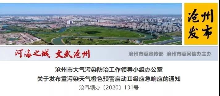 滄州市11月9日8時(shí)發(fā)布重污染天氣橙色預(yù)警,啟動(dòng)Ⅱ級(jí)應(yīng)急響應(yīng)