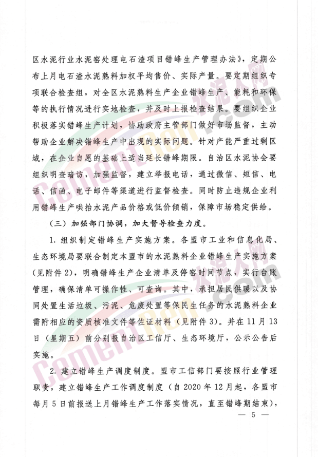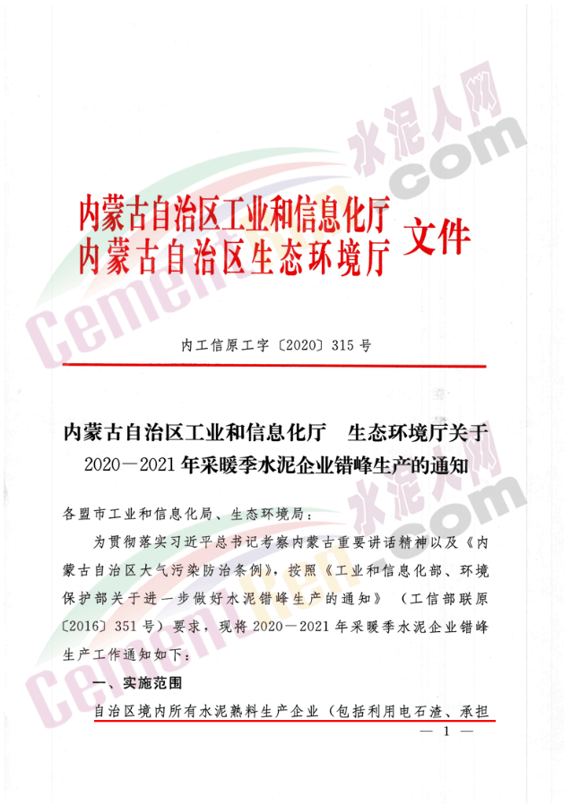 各盟市工業(yè)和信息化局、生態(tài)環(huán)境局要聯(lián)合制定本盟市的水泥熟料企業(yè)錯峰生產(chǎn)實施方案,明確錯峰生產(chǎn)企業(yè)清單及停窯時間節(jié)點,實行臺賬管理,確保清單可操作性、可查詢。其中,承擔居民供暖以及協(xié)同處置生活垃圾、污泥、危廢處置等保民生任務(wù)的水泥熟料企業(yè)需附相應(yīng)的資質(zhì)核準文件等佐證材料。