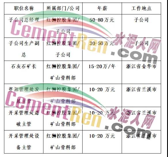 在10月份發(fā)布招聘信息的水泥集團(tuán)中,華潤集團(tuán)招聘職位多達(dá)2000個超七成的工作崗位在香港;紅獅水泥子公司總經(jīng)理年薪80萬!海螺水泥應(yīng)屆生最低月工資也6000元起;臺泥水泥27個崗位在招聘新人,堯柏水泥17個崗位虛位以待,入職之后很可能會被派到海外賺外匯。