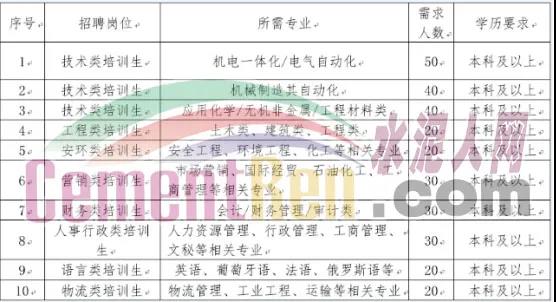 堯柏水泥招聘包括水泥工藝、設(shè)備、電氣、土建、鋼結(jié)構(gòu)、安環(huán)、自動化、智能化、水泥研發(fā)工程師和辦公室主任、財(cái)務(wù)經(jīng)理、市場經(jīng)理、人力資源經(jīng)理等行政崗位共計(jì)17個崗位多名員工,且有機(jī)會赴海外項(xiàng)目部工作。