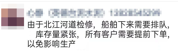 珠三角區(qū)域主要品牌水泥經(jīng)銷商通知,由于北江河道檢修,船舶需要排隊,庫存緊張,所有客戶需要提前下單。