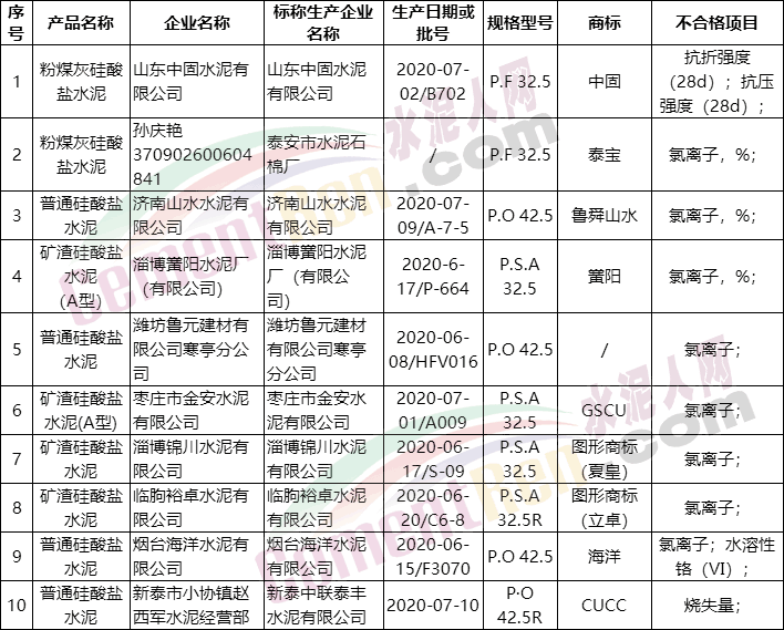 近日,多區(qū)域發(fā)布水泥建材產(chǎn)品抽檢結果,山東,山西,江蘇3個地區(qū)共查出13個批次不合格水泥。不合格項目為氯離子、燒失量、28d強度、水溶性鉻(VI)項目等。山東省10家企業(yè)的10批次水泥不符合相關標準的要求