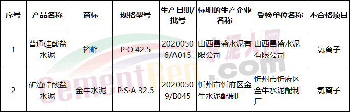 山西抽查兩個批次水泥氯離子不合格,涉及兩家水泥企業(yè)