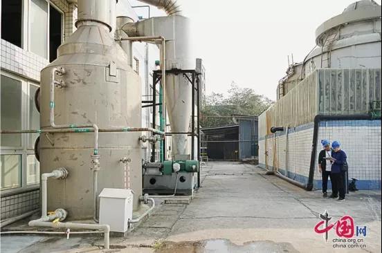 四川自貢市生態(tài)環(huán)境局執(zhí)法人員檢查企業(yè)濕法除塵設(shè)備