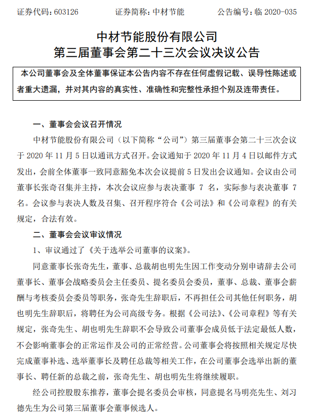1、胡也明離職總裁職位,離職時間為2020年11月17日,離職原因為:工作變動。2、付貴平上任副總經(jīng)理職位,上任時間為2020年11月17日。3、馬明亮上任總裁職位,上任時間為2020年11月17日。中材節(jié)能股份有限公司是中材集團旗下從事余熱、余壓利用的余熱發(fā)電全方位服務(wù)商。中材節(jié)能致力于工業(yè)余熱、余壓的技術(shù)開發(fā)、綜合利用和產(chǎn)業(yè)化,擁有該領(lǐng)域及相關(guān)領(lǐng)域的設(shè)計、對外貿(mào)易經(jīng)營以及對外工程總承包等各類經(jīng)營資質(zhì),主要從事余熱發(fā)電項目的投資、技術(shù)開發(fā)、系統(tǒng)集成、工程設(shè)計、咨詢及工程總承包,提供清潔發(fā)展機制項目的開發(fā)方案及技術(shù)咨詢.中材節(jié)能也是經(jīng)國家商務(wù)部批準的承包境外低溫余熱發(fā)電系統(tǒng)工程和境內(nèi)國際招標工程等業(yè)務(wù)的公司。