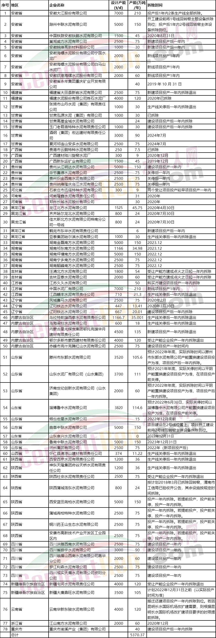 據水泥人網不完全統(tǒng)計,自2020年以來,各地工信廳發(fā)布的產能置換情況來看,關停的水泥企業(yè)共78家,涉及產能5370.37萬噸,拆除及關停時示如下所示: