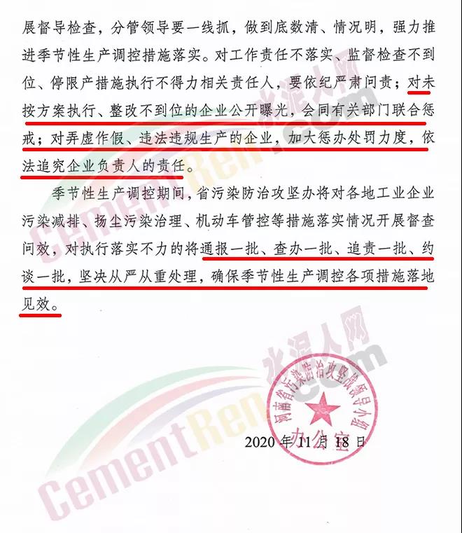 季節(jié)性生產(chǎn)調(diào)控期間,省污染防治攻堅(jiān)辦將對(duì)各地工業(yè)企業(yè)污染減排、揚(yáng)塵污染治理、機(jī)動(dòng)車管控等措施落實(shí)情況開展督查問(wèn)效,對(duì)執(zhí)行落實(shí)不力的將通報(bào)一批、查辦一批、追責(zé)一批、約談一批,堅(jiān)決從嚴(yán)從重處理,確保季節(jié)性生產(chǎn)調(diào)控各項(xiàng)措施落地見(jiàn)效。文件全文如下: