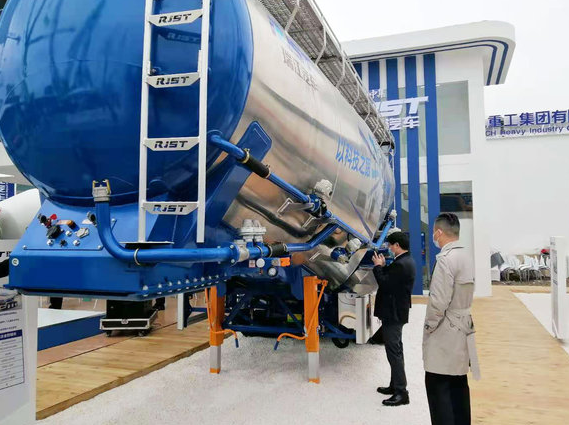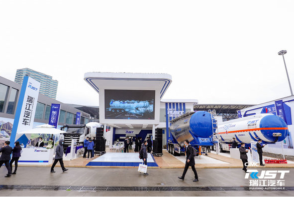 在展會(huì)現(xiàn)場(chǎng),中集瑞江全新一代智能混凝土攪拌車“紅巖瑞江”攪拌車、“鋁神1號(hào)”液罐車以及2021款鋁合金粉罐車亮相,吸引了眾多參展人士的圍觀。