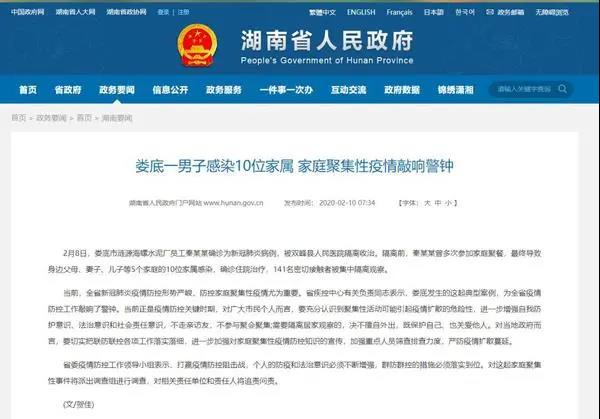 今年2月初,湖南自婁底漣源海螺水泥廠員工秦某某確診為新冠肺炎病例,被雙峰縣人民醫(yī)院隔離收治。隔離前,秦某某曾多次參加家庭聚餐,最終導(dǎo)致身邊父母、妻子、兒子等5個(gè)家庭的10位家屬感染確診住院治療,141名密切接觸者被集中隔離觀察。針對此案婁底市公案機(jī)關(guān)湖南省政府分別發(fā)布通告及警示。