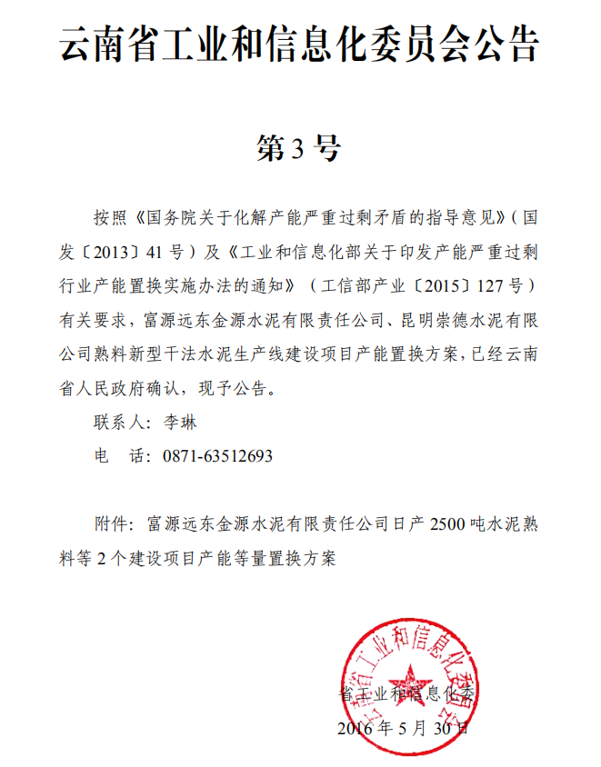 日前,云南省工信廳發(fā)布《關(guān)于撤銷富源遠東金源水泥有限責任公司日產(chǎn)2500噸熟料建設(shè)項目產(chǎn)能置換方案的公告》提到,富源遠東金源水泥有限責任公司日產(chǎn)2500噸熟料建設(shè)項目因存在“批小建大”問題,于2018年5月被叫停整改。鑒于該項目產(chǎn)能置換方案已無法繼續(xù)執(zhí)行,云南省工業(yè)和信息化廳決定撤銷“富源遠東金源水泥有限責任公司日產(chǎn)2500噸熟料建設(shè)項目產(chǎn)能置換方案”。公告原文如下: