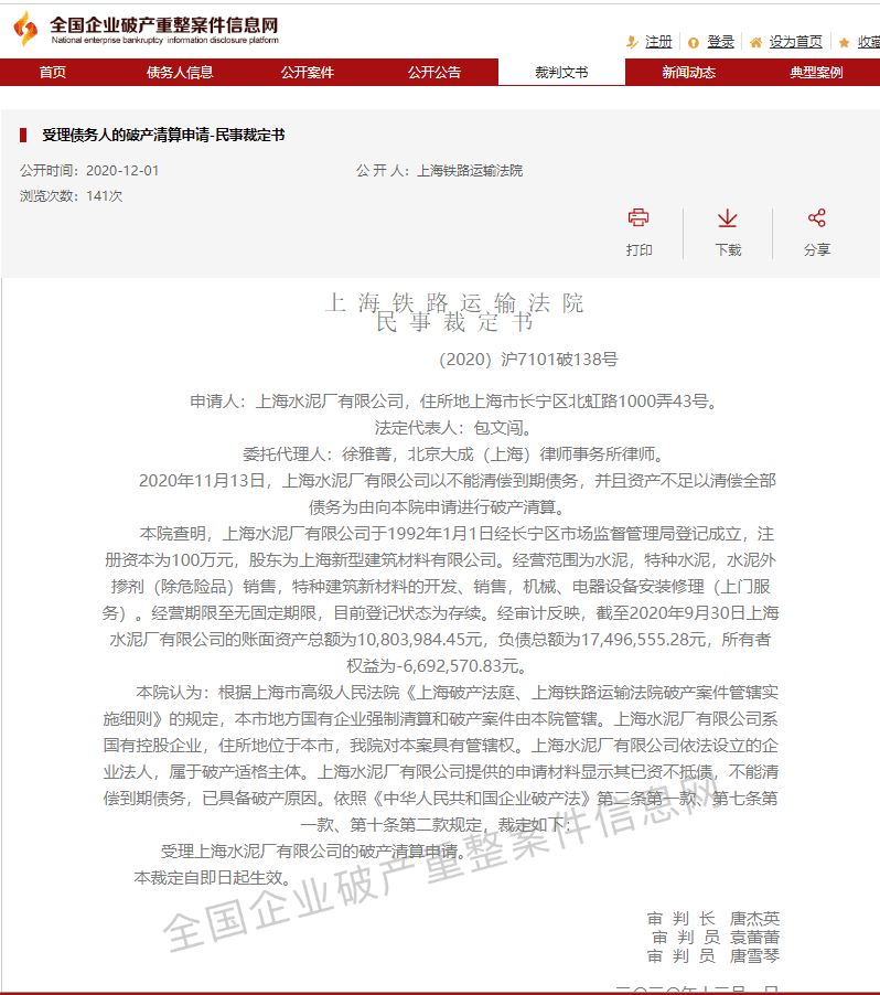 此前,水泥人網(wǎng)曾報(bào)道多起水泥企業(yè)破產(chǎn)清算的案例,可見類似的情形并不少見。全國(guó)企業(yè)破產(chǎn)重整案件信息網(wǎng)數(shù)據(jù)顯示,多家水泥企業(yè)被指定了破產(chǎn)清算管理人。