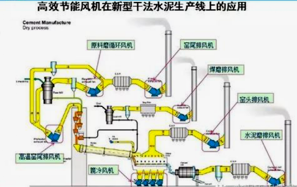 用風(fēng)就得有風(fēng)機(jī),風(fēng)的重要性就是風(fēng)機(jī)的重要性。對于水泥生產(chǎn)來講,需要風(fēng)機(jī)的地方實(shí)在是太多了,一個(gè)中等規(guī)模的水泥廠,僅就大型風(fēng)機(jī)而言就有幾十臺之多,還需有多種規(guī)格的小型風(fēng)機(jī)上百臺。比如大型風(fēng)機(jī)(主要是離心風(fēng)機(jī)),對水泥生產(chǎn)的能耗有著較大影響。