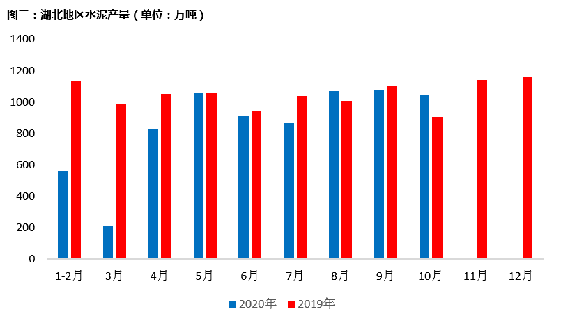 據(jù)國(guó)家統(tǒng)計(jì)局?jǐn)?shù)據(jù)顯示,2020年10月,湖北地區(qū)水泥產(chǎn)量為1049.33萬(wàn)噸,同比上升13.7%。湖北水泥市場(chǎng)需求相較于去年有所回落,據(jù)國(guó)家統(tǒng)計(jì)局?jǐn)?shù)據(jù)顯示,截止2020年10月,湖北省房地產(chǎn)總投資為3843.42億元,同比下跌11.8%。市場(chǎng)需求不佳情況下,產(chǎn)量同比上升,外來(lái)水泥持續(xù)沖擊,湖北地區(qū)水泥價(jià)格后續(xù)上漲難度加大。
