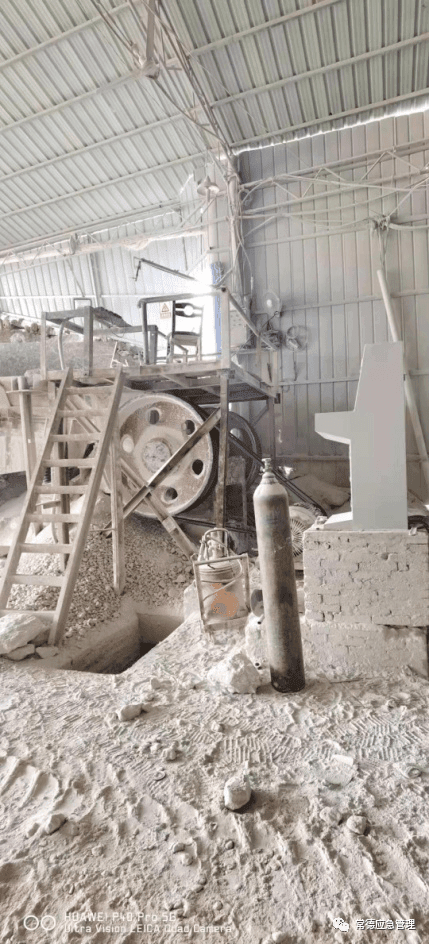 存在的隱患問(wèn)題:1.地面破碎系統(tǒng)設(shè)備設(shè)施無(wú)防護(hù)罩;2.井下鏟裝機(jī)械沒(méi)有配備滅火器;3.井下爆破作業(yè)采用固定母線放炮;4.井下局扇放置在井巷底板上,沒(méi)有安裝局扇托架;5.井下施救供水管使用膠質(zhì)水管;6.井下東1工作面、西1工作面、西2工作面壓風(fēng)自救和供水施救系統(tǒng)未到工作面;7.負(fù)100運(yùn)輸巷頂板存在松石,沒(méi)有及時(shí)清頂;8.氧氣瓶與液化氣瓶混放在倉(cāng)庫(kù)中;9.廠區(qū)未設(shè)置安全警示標(biāo)志;10.現(xiàn)場(chǎng)電焊工未見(jiàn)到操作證書(shū)。