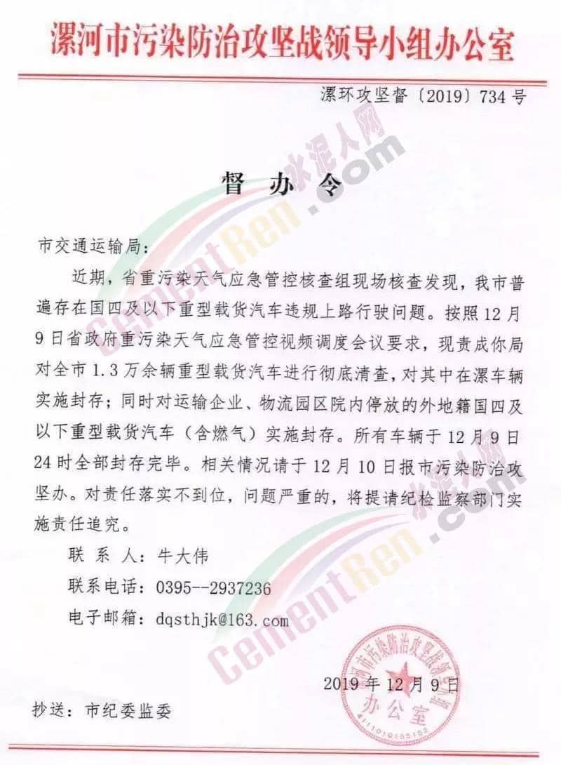 隨后官方宣稱,漯河市交通運(yùn)輸局收到省督辦令。要求對全市1.3萬余輛重型載貨汽車進(jìn)行清查,對在漯車輛實(shí)施封存;同時對運(yùn)輸企業(yè),物流園區(qū)院內(nèi)停放的外地籍國四及以下重型載貨汽車(含燃?xì)?實(shí)施封存。