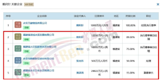 據(jù)了解,大田新巖水泥建設(shè)日產(chǎn)5000噸熟料水泥生產(chǎn)線技改項(xiàng)目于2020年7月6日開(kāi)工建設(shè),項(xiàng)目總投資12.5億元,占地面積約400畝,建筑面積24萬(wàn)平方米,主要建設(shè)一條全國(guó)工藝裝備技術(shù)水平領(lǐng)先的節(jié)能環(huán)保型的新型干法水泥生產(chǎn)線及配套建設(shè)7.5兆瓦余熱發(fā)電、固廢處理項(xiàng)目。據(jù)查,福建省大田縣新巖水泥有限公司法人賴?yán)樛瑫r(shí)還擔(dān)任福建省謀成水泥發(fā)展有限公司、福建省永安萬(wàn)年水泥有限公司等多家水泥企業(yè)主要負(fù)責(zé)人。