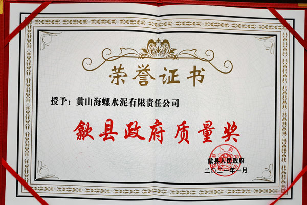 2021年2月19日下午,歙縣縣委、縣政府召開的縣經(jīng)濟開發(fā)區(qū)改革創(chuàng)新動員大會上又傳出喜訊:黃山海螺水泥公司再獲“2020年度工業(yè)稅收10強”和歙縣政府第三屆質(zhì)量獎。黃山海螺總經(jīng)理周安夢現(xiàn)場領(lǐng)獎,代表公司接受表彰。
