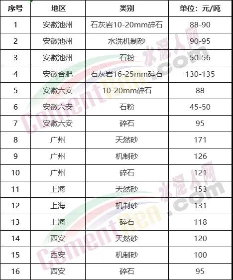 安徽、福建多區(qū)域砂石價(jià)格小幅上調(diào)