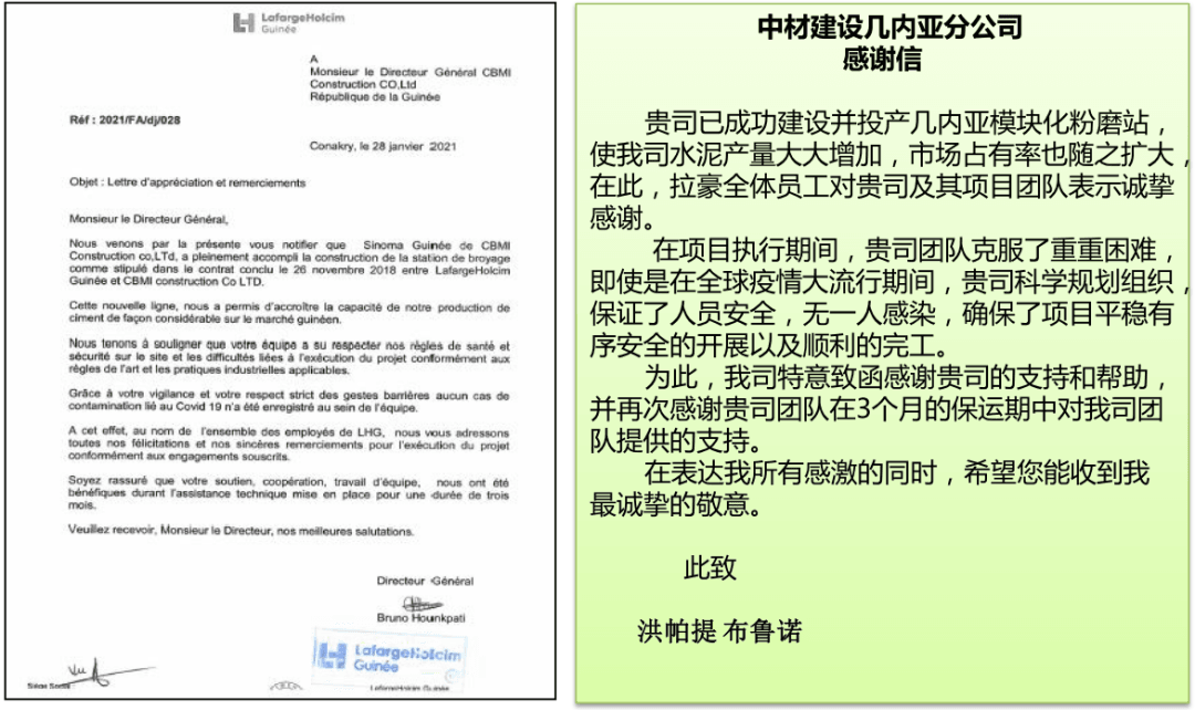 2月8日,國資委向中國建材集團(tuán)有限公司發(fā)來表揚(yáng)信,對集團(tuán)及其所屬中材海外阿根廷項(xiàng)目部在境外防疫工作中發(fā)揮的責(zé)任擔(dān)當(dāng)和互助精神予以表揚(yáng)。