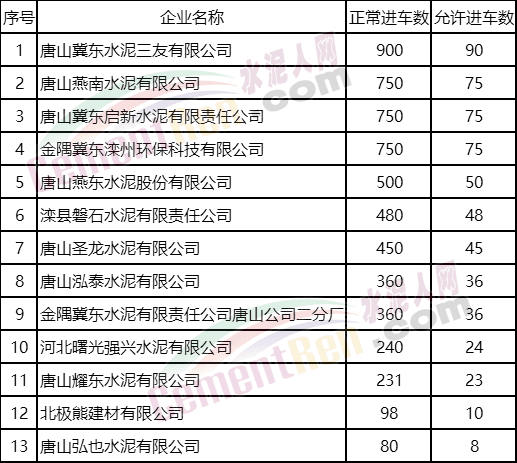 據(jù)水泥人網(wǎng)統(tǒng)計,共13家水泥企業(yè)正常進數(shù)量共5949輛,允許進車數(shù)僅595輛。