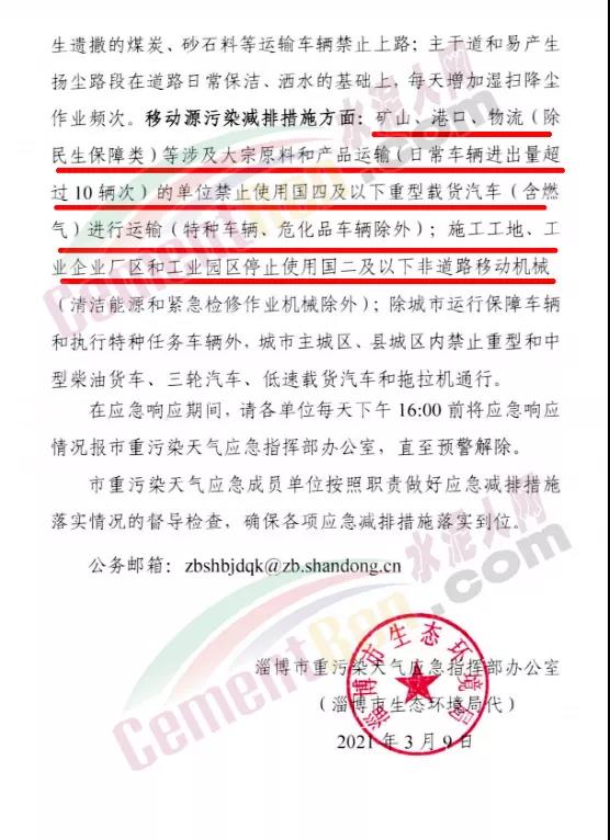 淄博市重污染天氣應急指揮部辦公室發(fā)布《關(guān)于發(fā)布重污染天氣橙色預警啟動Ⅱ級應急響應的通知》稱按照要求,全市于2021年3月9日11時0分發(fā)布重污染天氣橙色預警,3月9日13時0分啟動Ⅱ級應急響應。請市重污染天氣應急指揮部各成員單位按要求及時啟動本部門重污染天氣應急預案,按照預案所確定的職責迅速采取如下應急措施∶