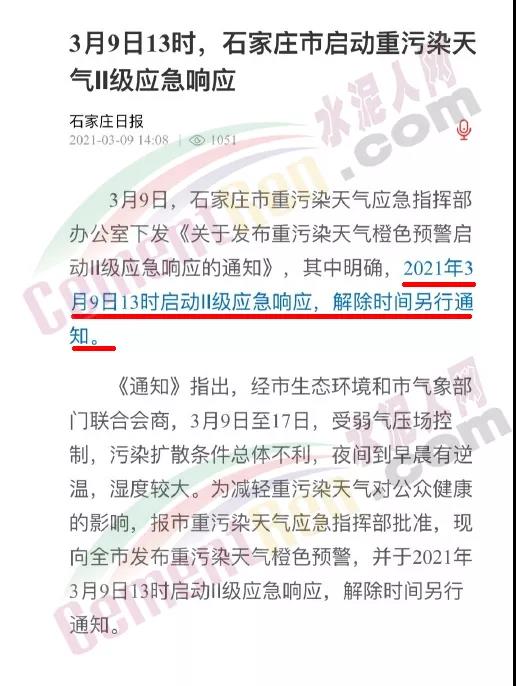 3月9日,石家莊市重污染天氣應急指揮部辦公室下發(fā)《關(guān)于發(fā)布重污染天氣橙色預警啟動Ⅱ級應急響應的通知》,其中明確,2021年3月9日13時啟動Ⅱ級應急響應,解除時間另行通知?!锻ㄖ分赋觯?jīng)市生態(tài)環(huán)境和市氣象部門聯(lián)合會商,3月9日至17日,受弱氣壓場控制,污染擴散條件總體不利,夜間到早晨有逆溫,濕度較大。為減輕重污染天氣對公眾健康的影響,報市重污染天氣應急指揮部批準,現(xiàn)向全市發(fā)布重污染天氣橙色預警,并于2021年3月9日13時啟動Ⅱ級應急響應,解除時間另行通知。